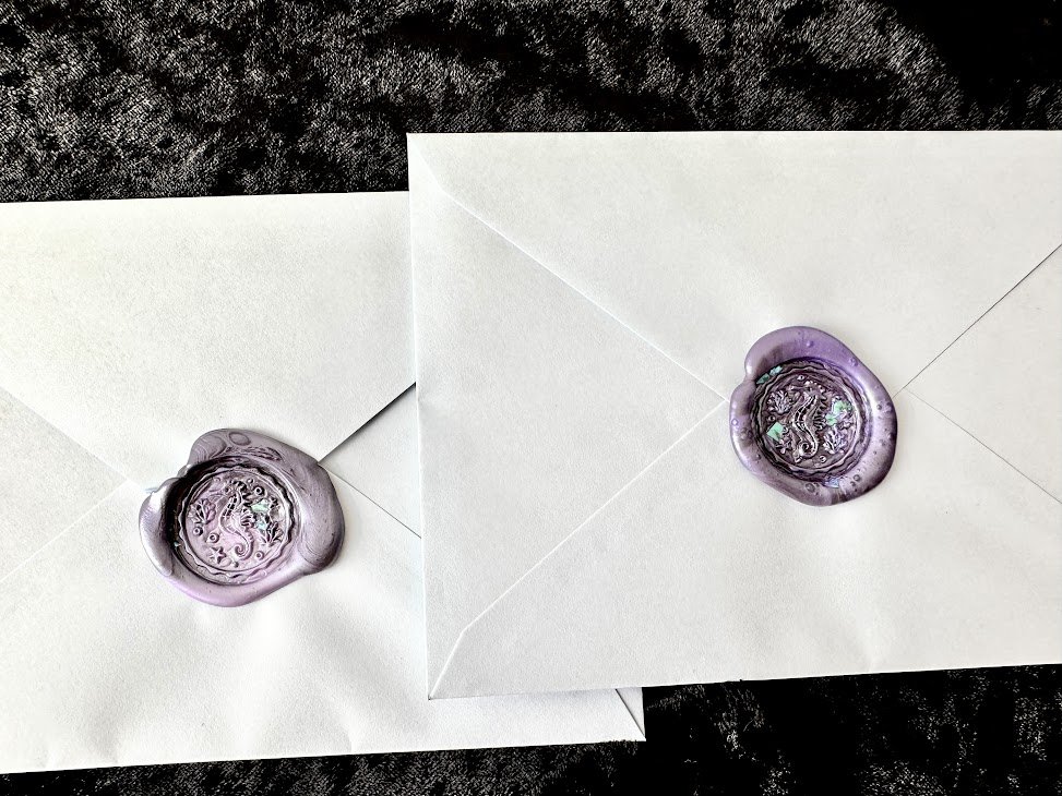 実写リトマメの世界に行く話だったので、封蝋はタツノオトシゴで、紫組のカラーリングにしました💜