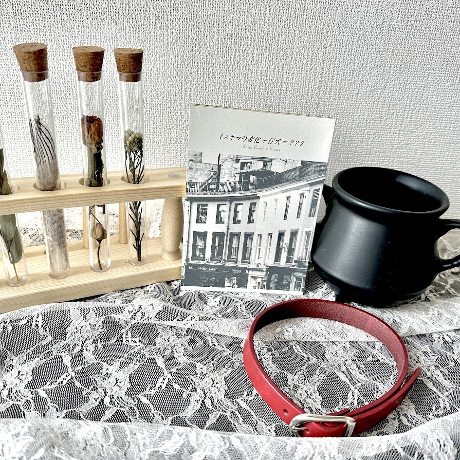 装丁 [71](スキマ²)変化+仔犬=???(クル監) #twst 表紙:マシュマロCoC見返し:タントセレクト本文:色上質紙チュールとツイードで作った巾着入り~~!チラ見え感がセクシーになってたらいいな!